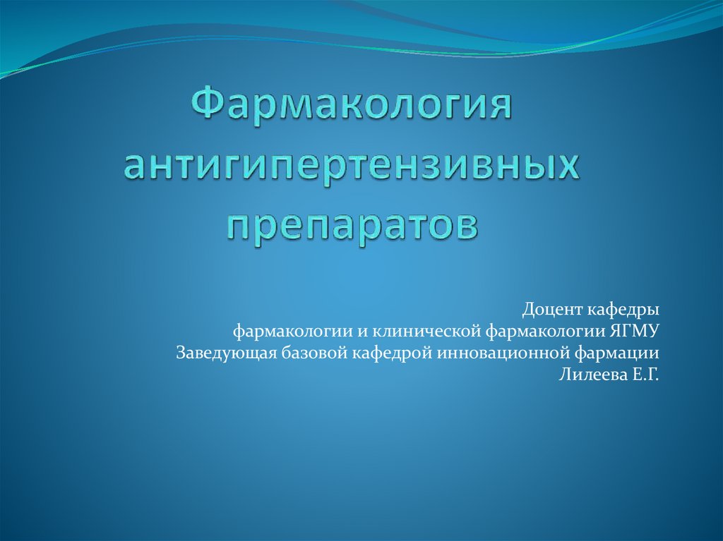 1. Фармакология антигипертензивных препаратов