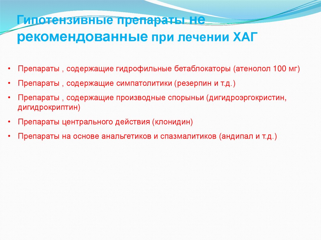 Гипотензивные препараты нерекомендованные при лечении ХАГ