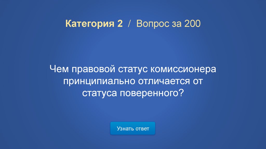 Категория 2 / Вопрос за 200Чем правовой статус комиссионера