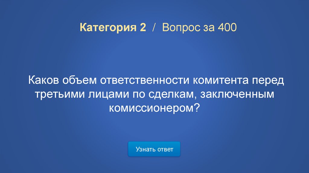 Категория 2 / Вопрос за 400Каков объем ответственности комитента перед