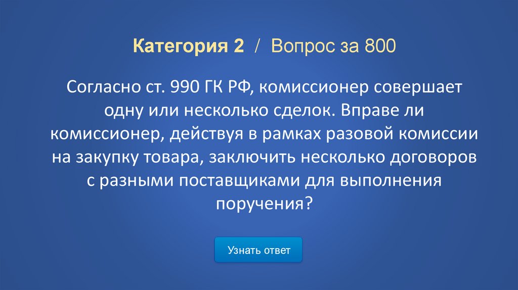 10. Правильный ответ Категория 1 / Вопрос за 800