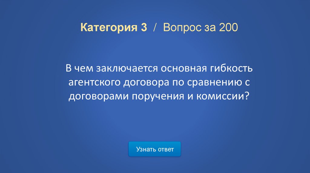 14. Правильный ответ Категория 2 / Вопрос за 400