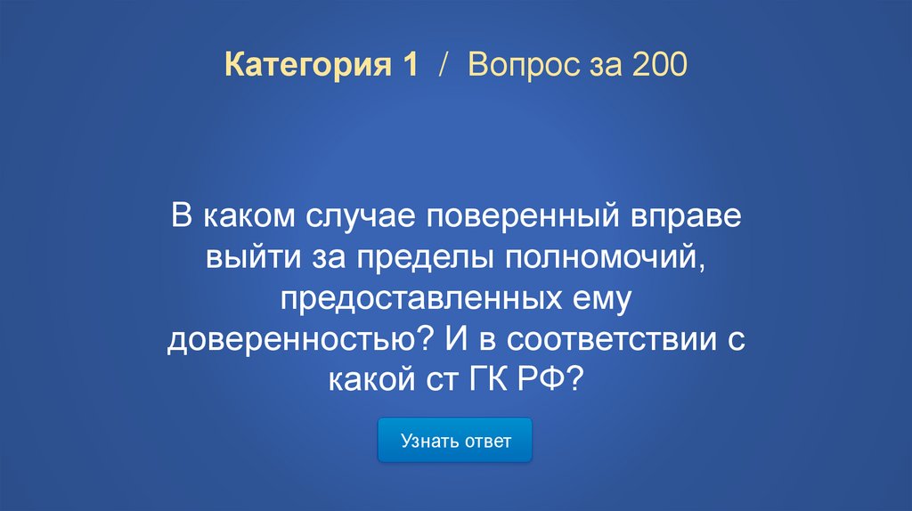 Категория 1 / Вопрос за 200В каком случае поверенный вправе