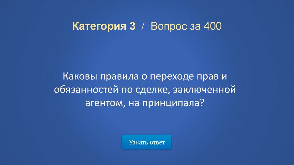 30. Правильный ответ Категория 4 / Вопрос за 400