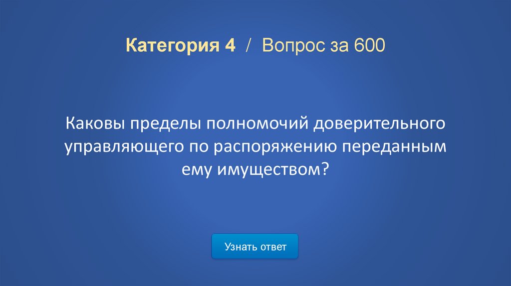 Категория 4 / Вопрос за 600Каковы пределы полномочий доверительного