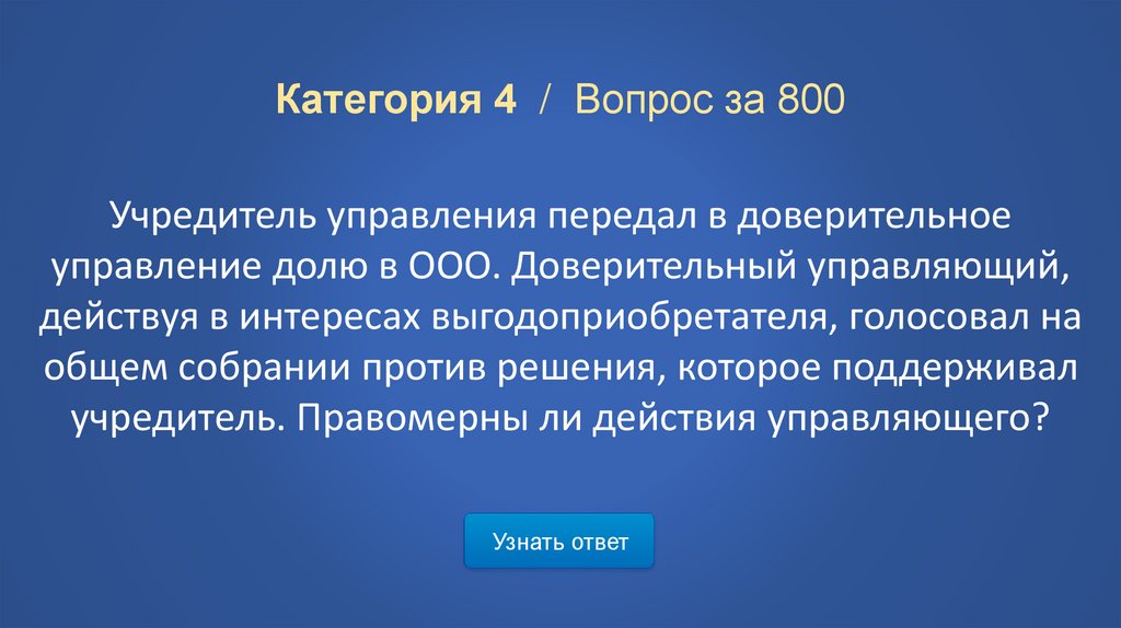 Категория 4 / Вопрос за 800Учредитель управления передал в доверительное