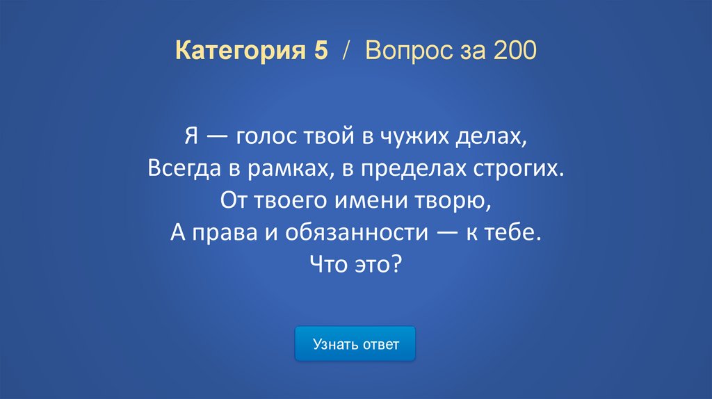 12. Правильный ответ Категория 2 / Вопрос за 200