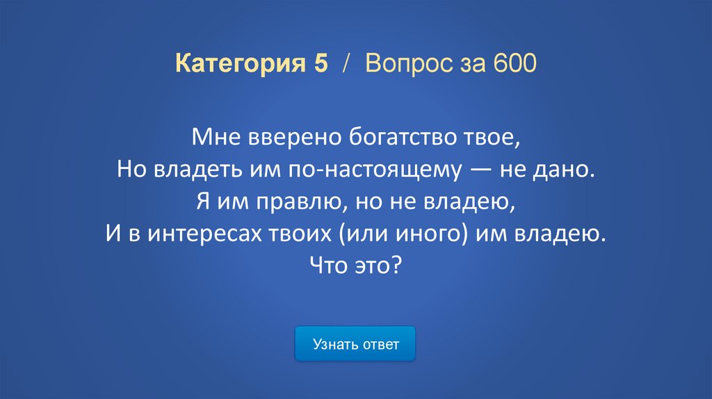 Категория 5 / Вопрос за 600Мне вверено богатство твое,