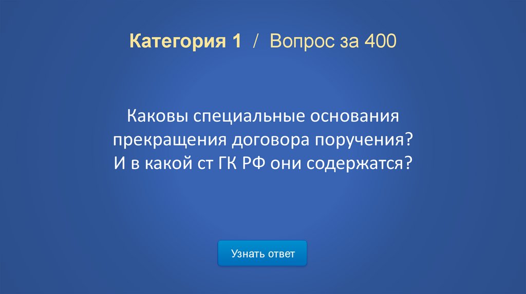 6. Правильный ответ Категория 1 / Вопрос за 400