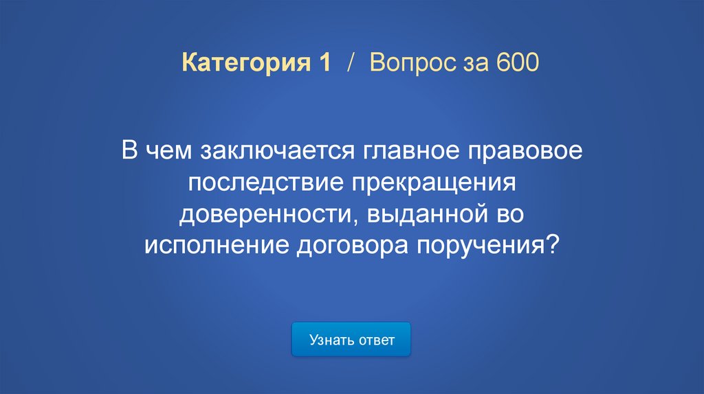 8. Правильный ответ Категория 1 / Вопрос за 600