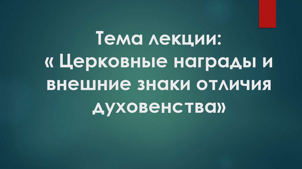 1. Тема лекции: « Церковные награды и внешние знаки отличия духовенства»