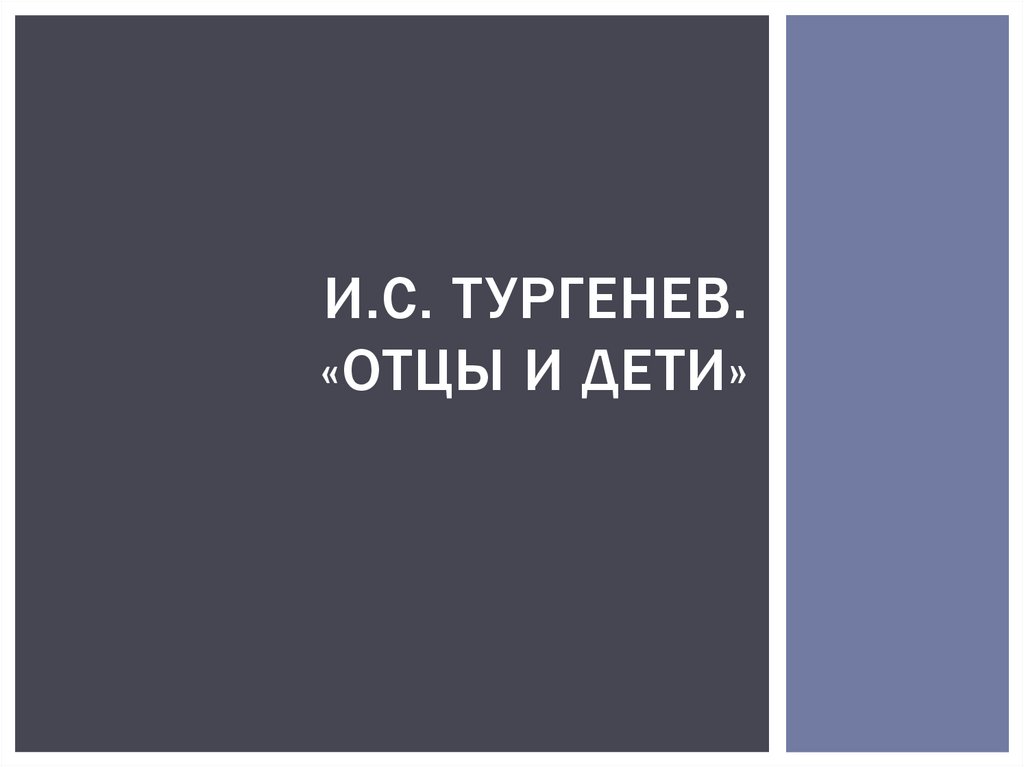 И.С. ТУРГЕНЕВ.«ОТЦЫ И ДЕТИ»