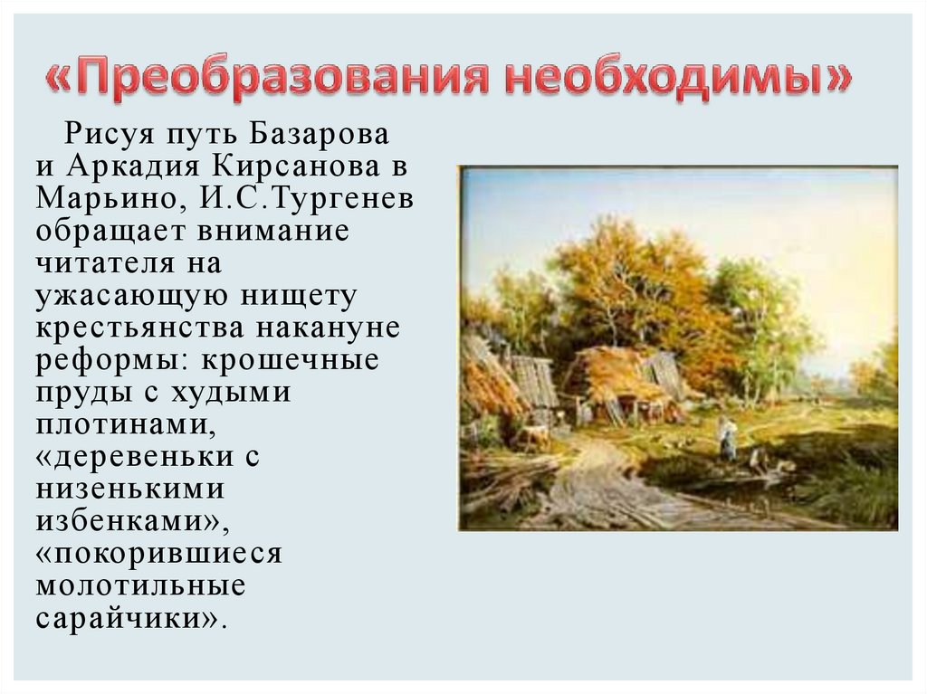 На первых порах Тургенев восторженно приветствовал освобождение крестьян. Но к