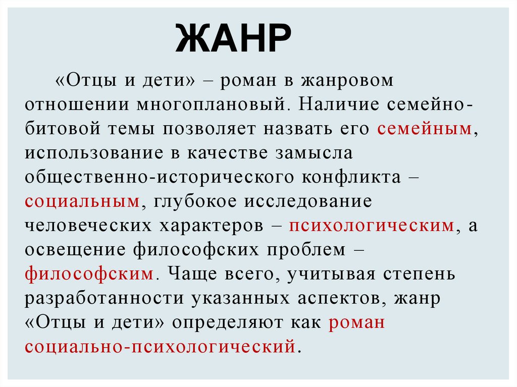 Особенности жанра и композиции романа Тургенева «Отцы и