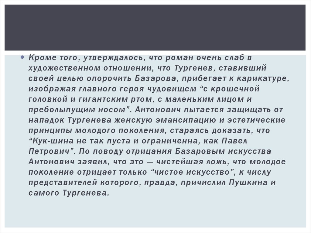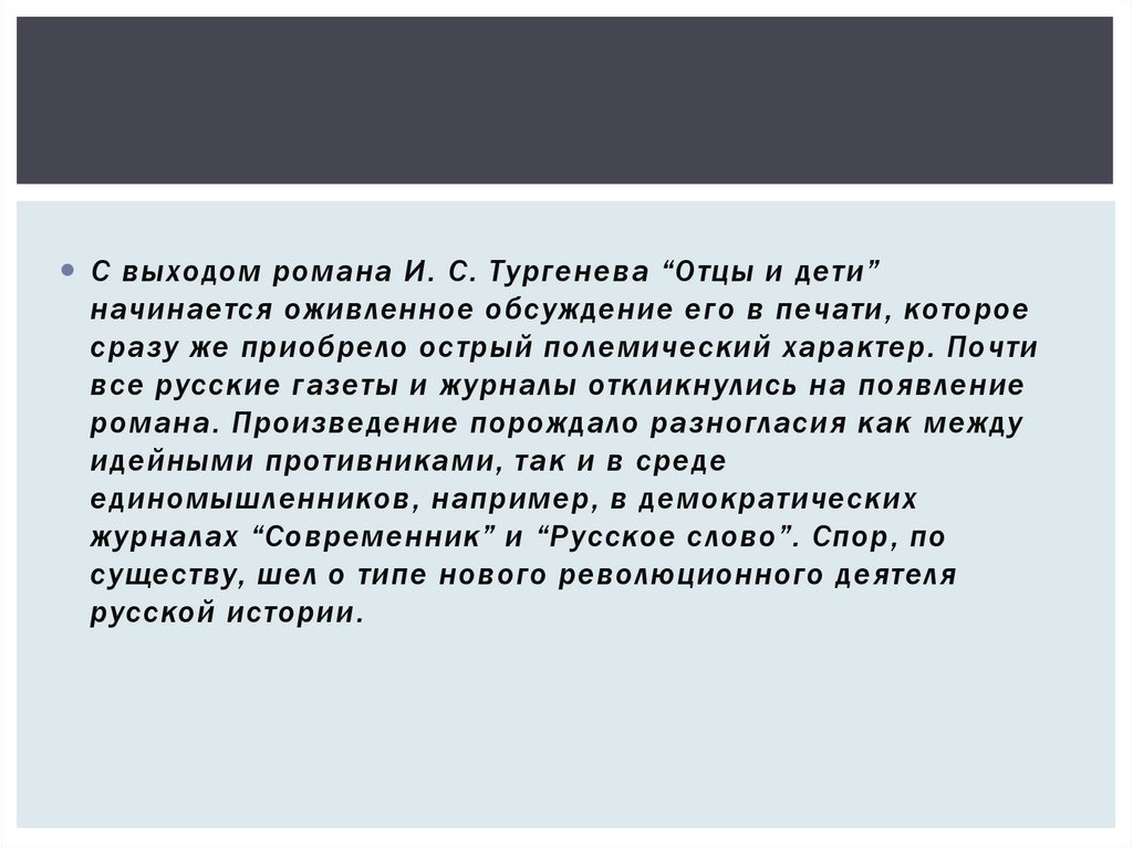 Что критикует Тургенев в «отцах» и в чем расходится с