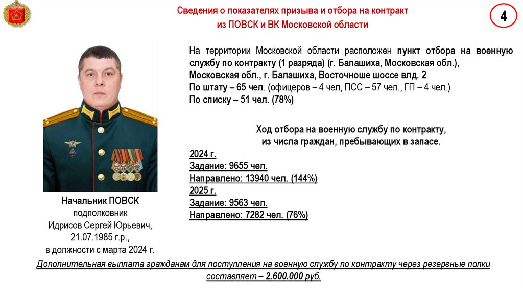 Сведения о показателях призыва и отбора на контрактиз ПОВСК и ВК Московской области