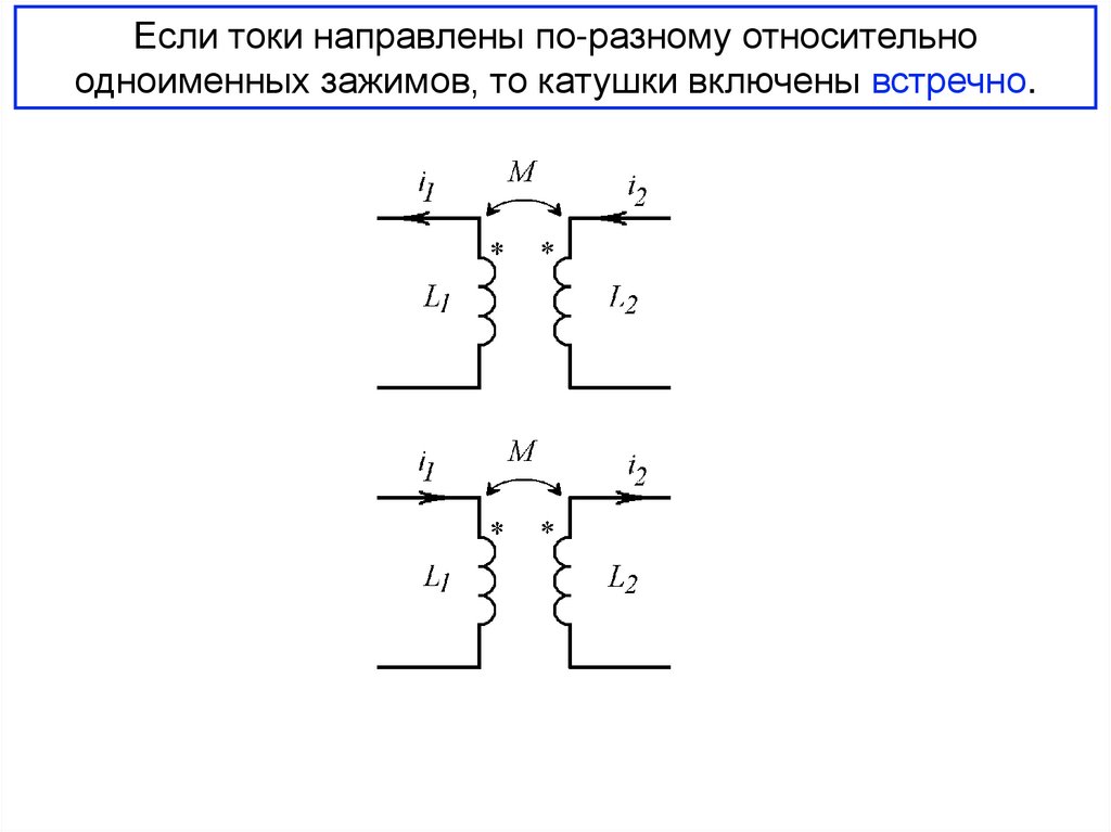 Если токи направлены по-разному относительноодноименных зажимов, то катушки включены встречно.