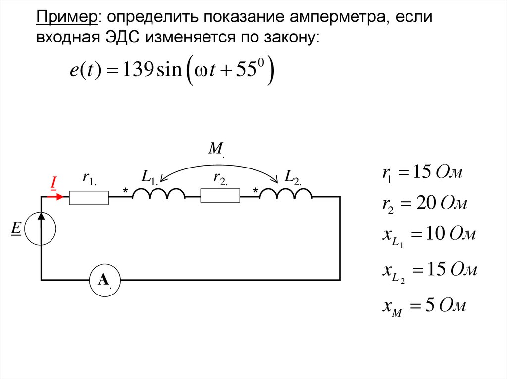 Пример: определить входной ток, если входнаяЭДС изменяется по закону: