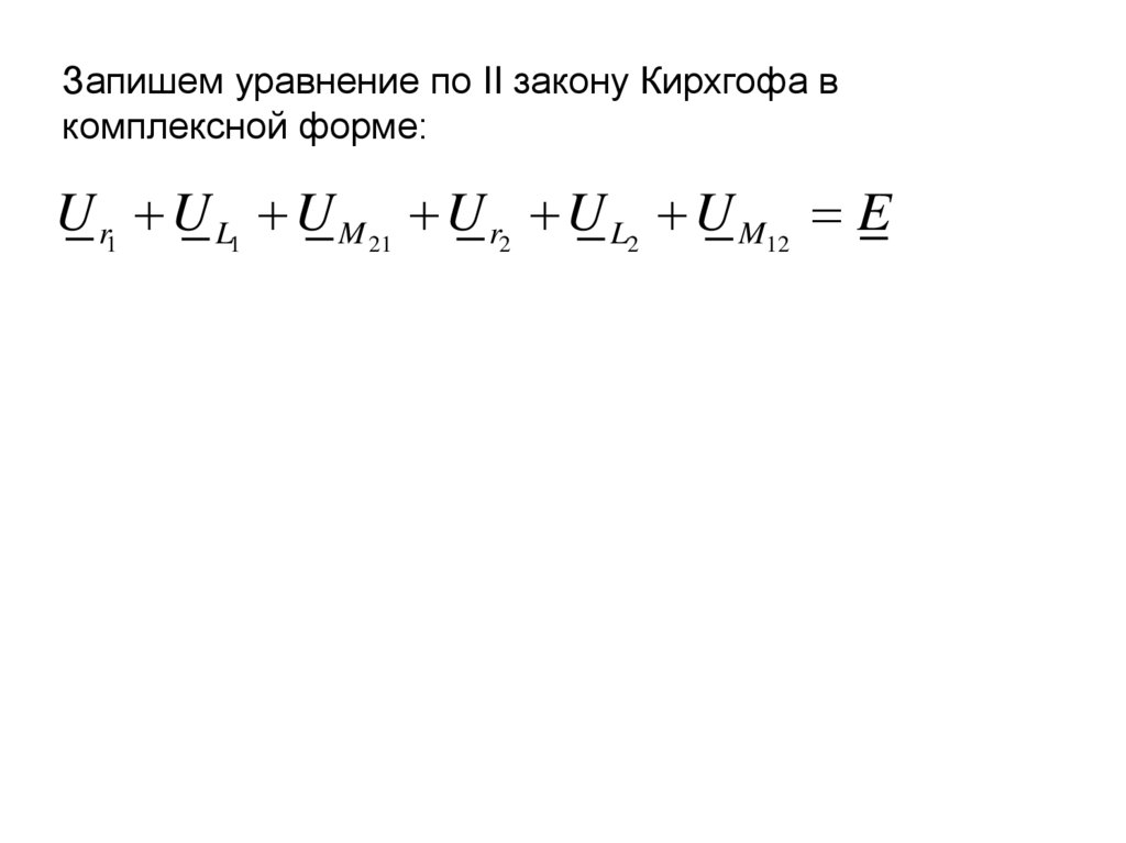 Запишем уравнение по II закону Кирхгофа вкомплексной форме: