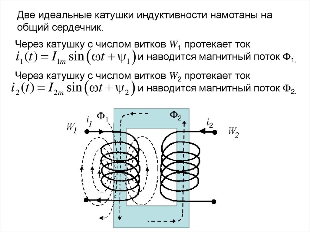 Две идеальные катушки индуктивности намотаны наобщий сердечник.