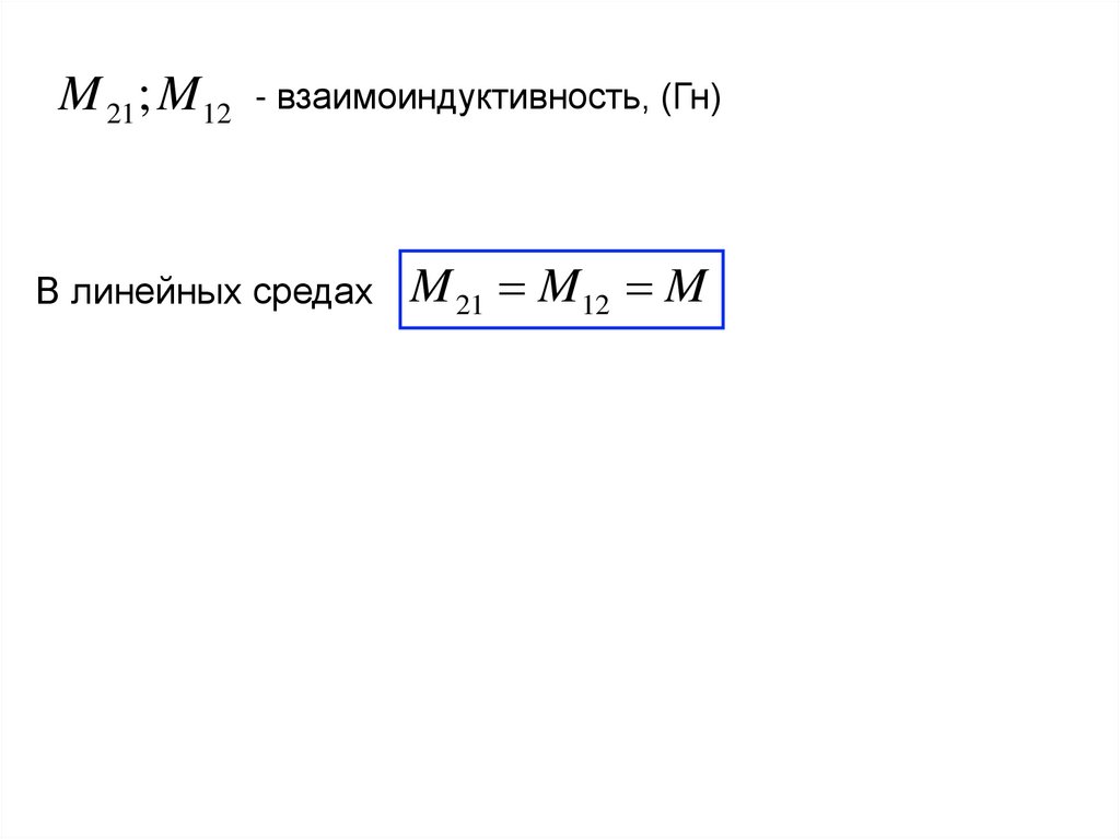 M 21; M12 - взаимоиндуктивность, (Гн)В линейных средах