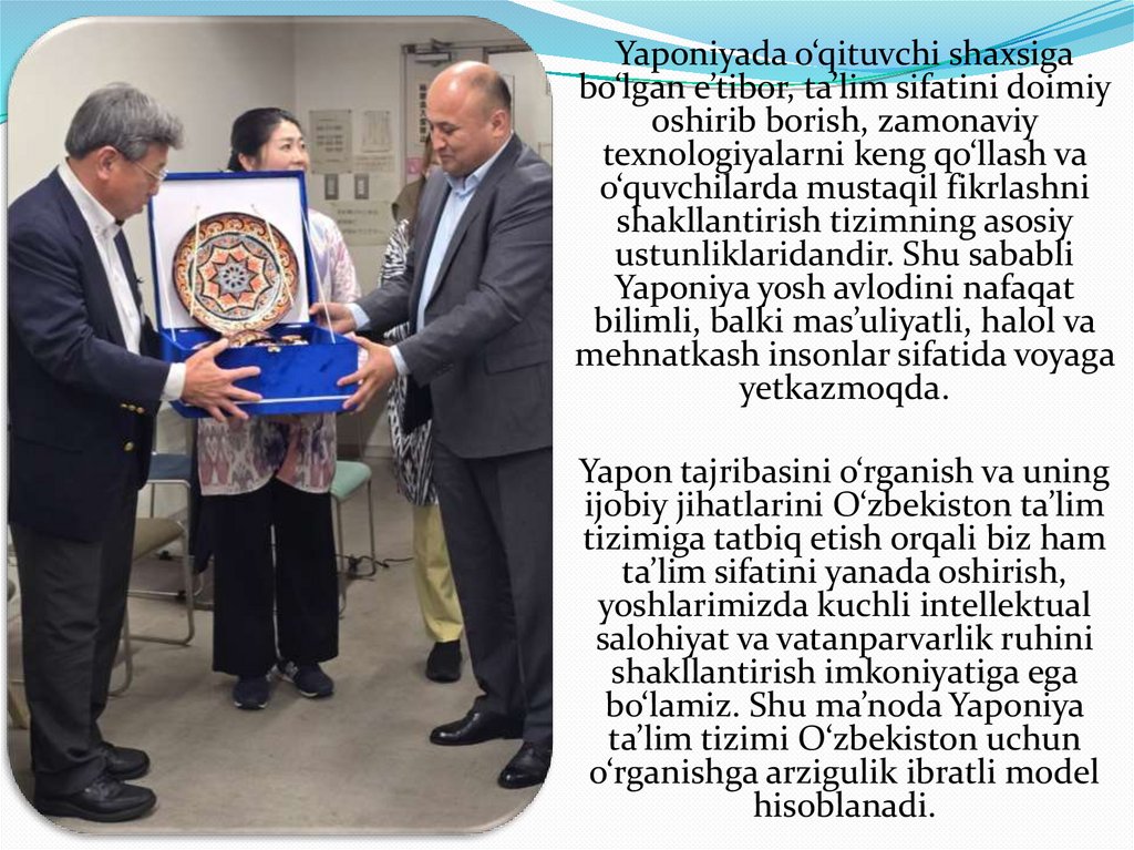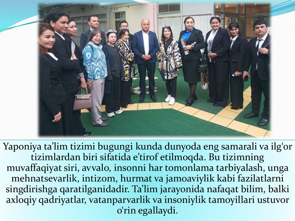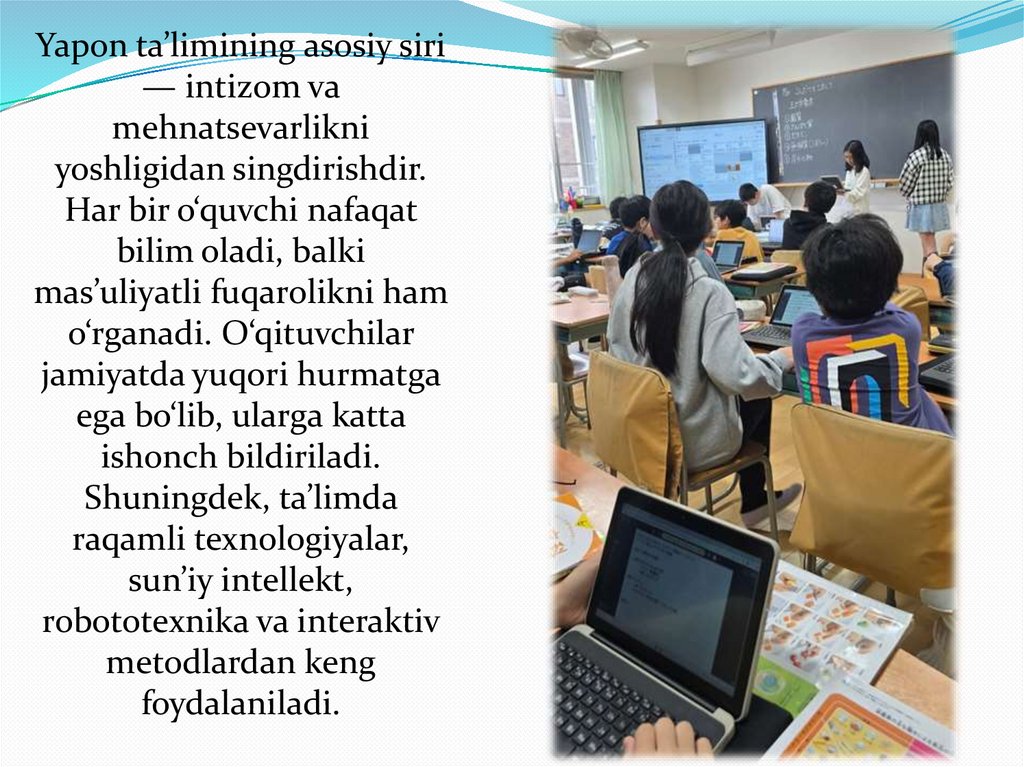 uchun sifatli ta’lim muhim o‘rin tutadi. Shu jihatdan Yaponiya ta’lim tizimi