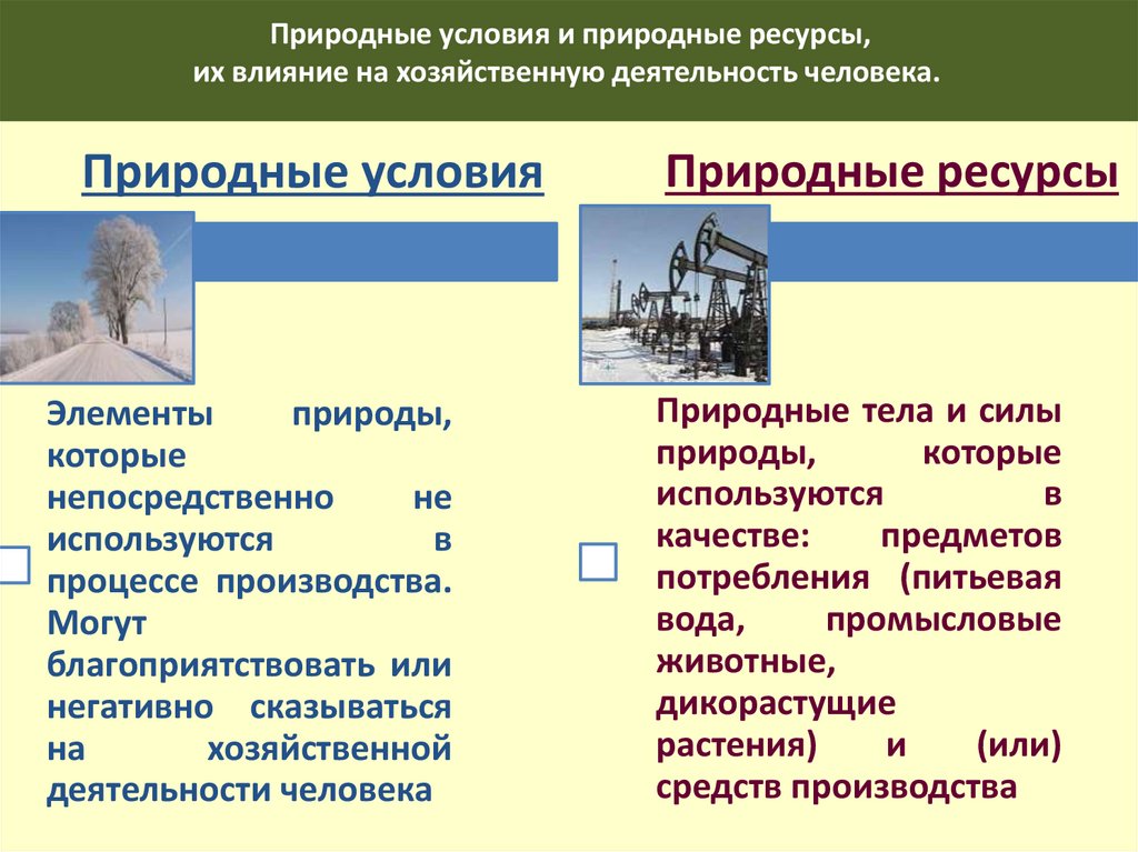 Природные условия и природные ресурсы,их влияние на хозяйственную деятельность человека.