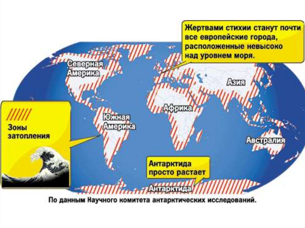 таяние ледников и повышение уровня Мирового океана. Миллионы людей на побережье