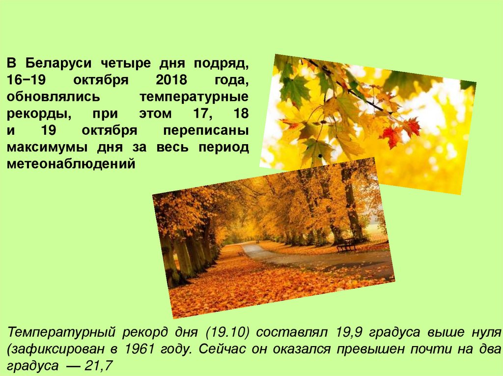 Рост максимальных температур воздуха, начала осенних заморозков.
