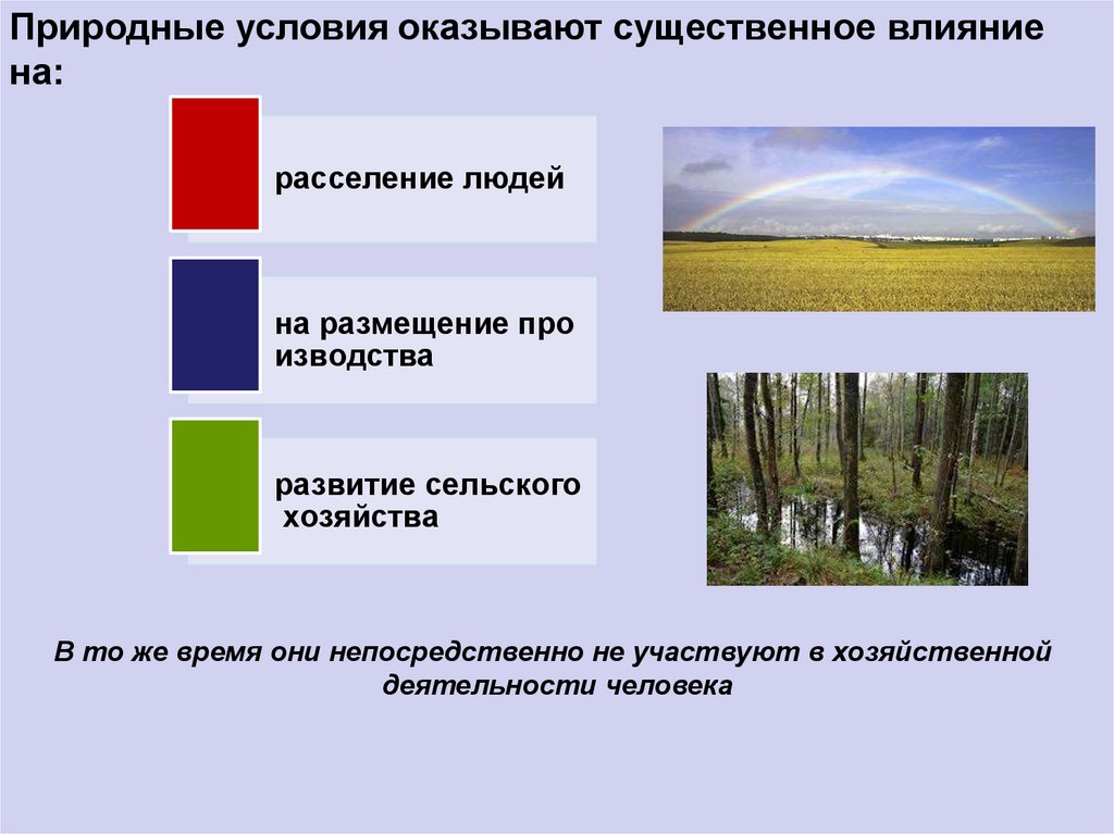 Природные условия оказывают существенно