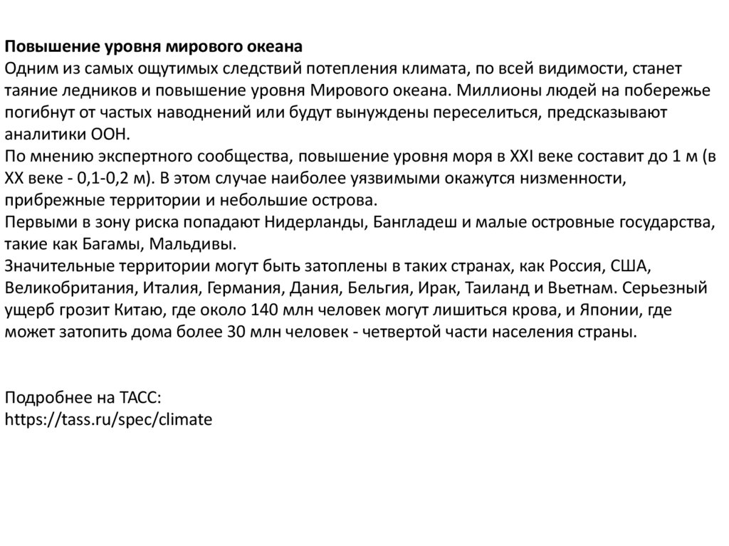 ХХ веке - 0,1-0,2 м). В этом случае наиболее уязвимыми окажутся низменности,