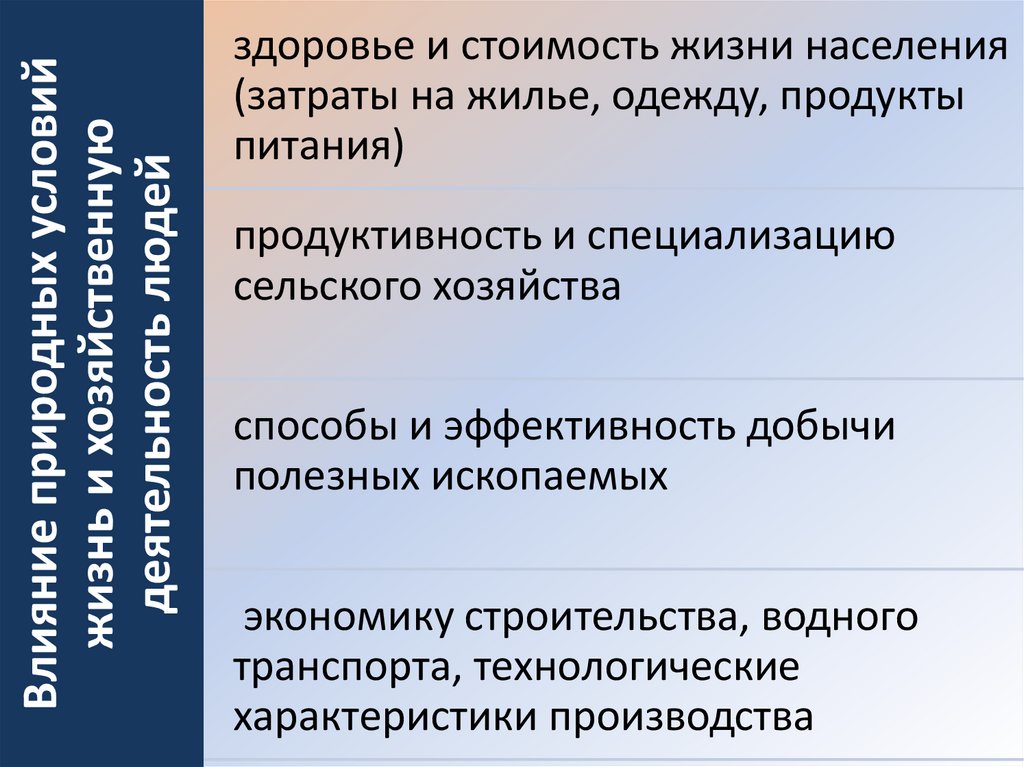 Влияние природных условийжизнь и хозяйственную