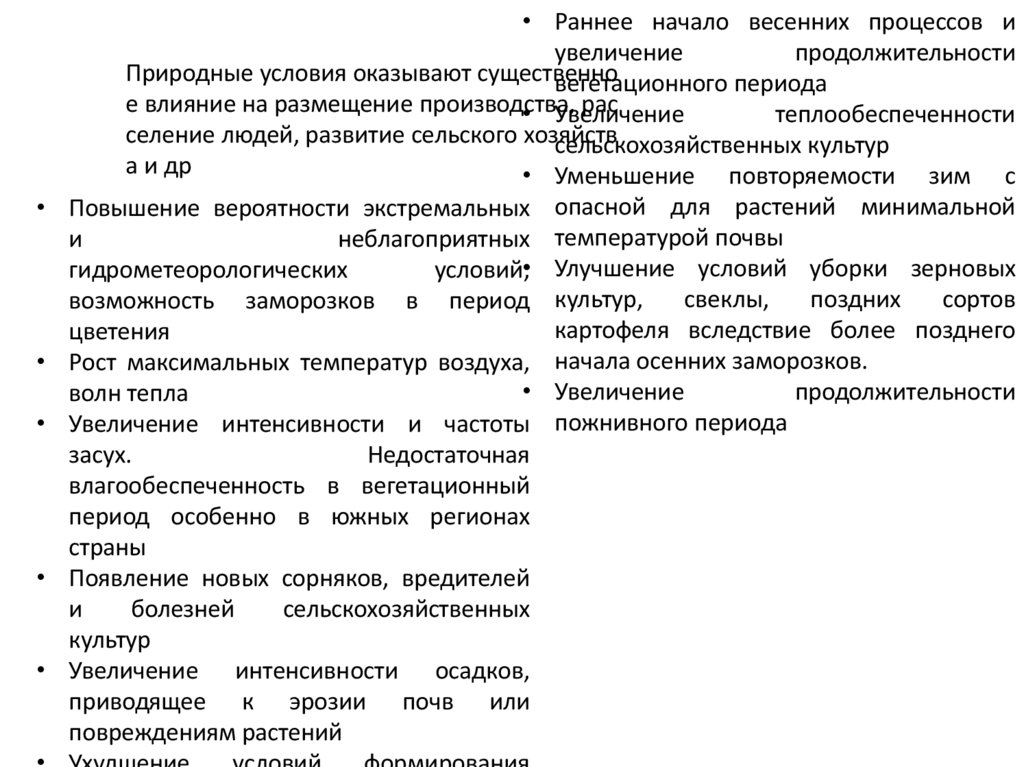 продолжительности беззаморозкового периода. Увеличение интенсивности осадков,