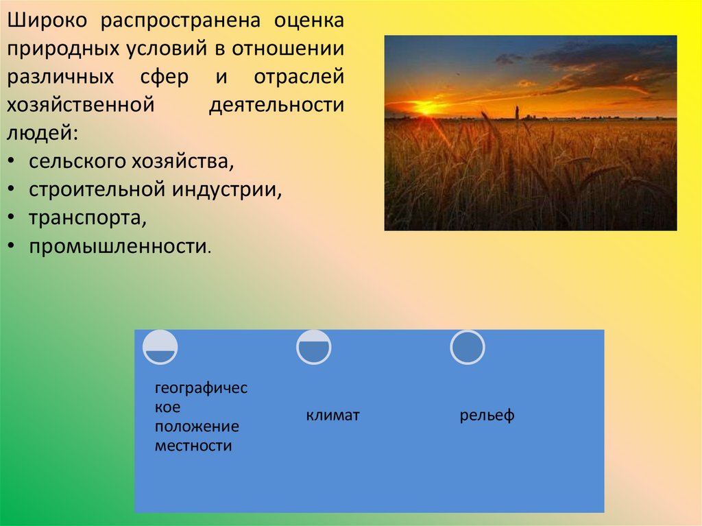Широко распространена оценкаприродных условий в отношении