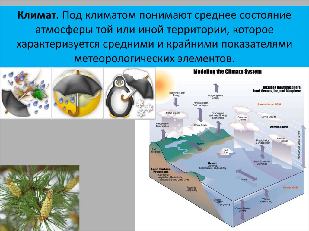 Климат. Под климатом понимают среднее состояниеатмосферы той или иной территории, которое