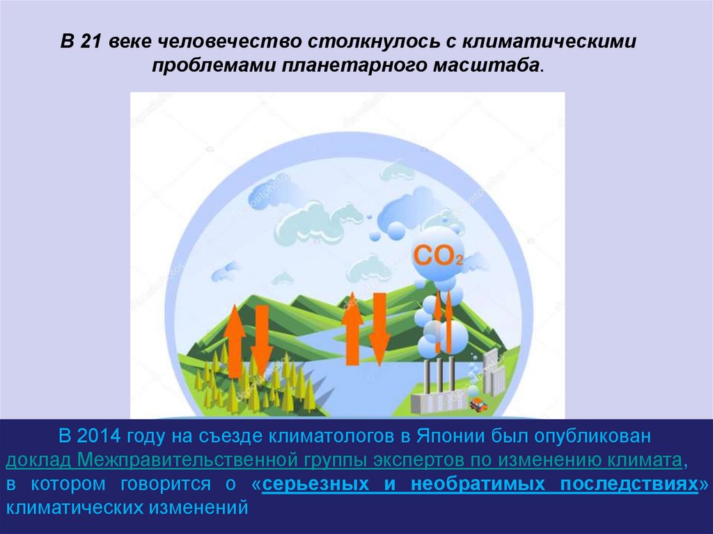 В 21 веке человечество столкнулось с климатическимипроблемами планетарного масштаба.