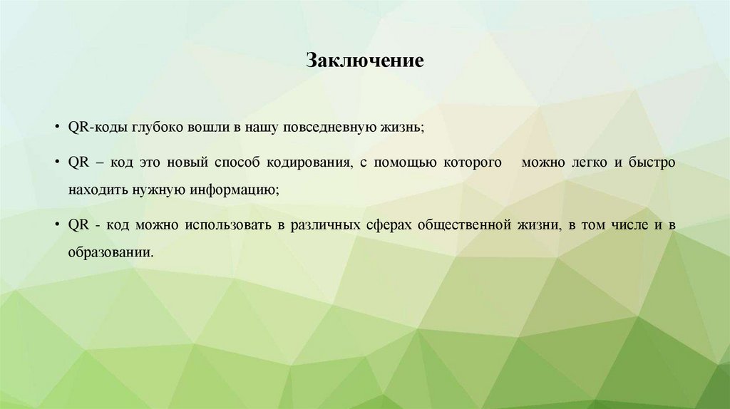Заключение• QR-коды глубоко вошли в нашу повседневную жизнь;