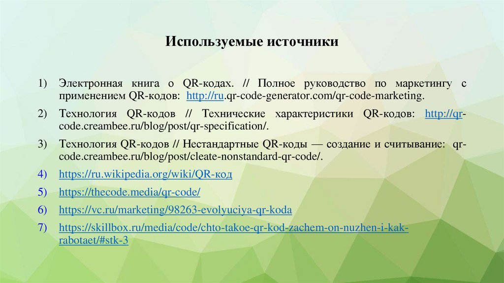 Технология QR-кодов // Нестандартные QR-коды — создание и считывание: qrcode.creambee.ru/blog/post/cleate-nonstandard-qr-code/.