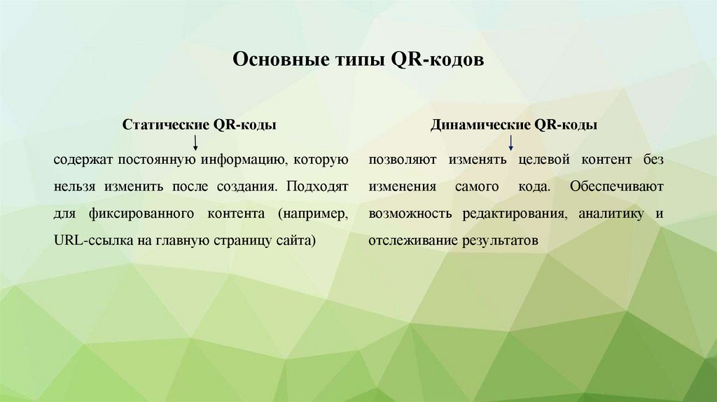 Основные типы QR-кодовСтатические QR-коды