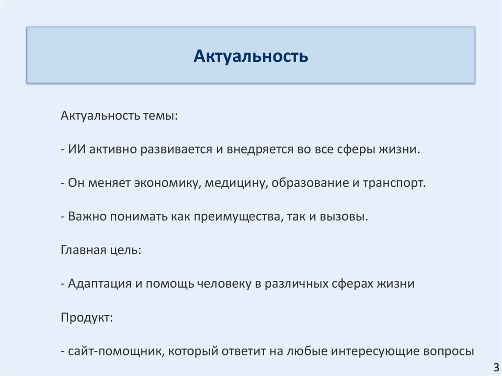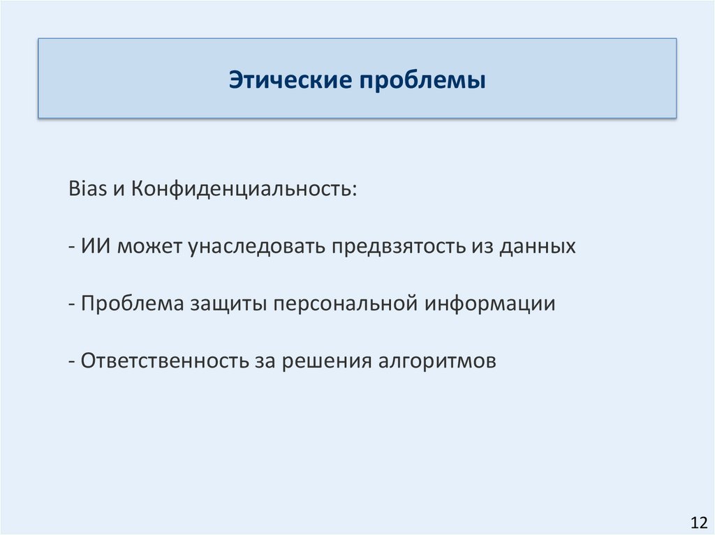 - ИИ активно развивается и внедряется во все сферы жизни.