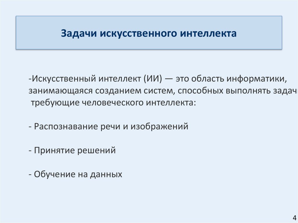 Задачи искусственного интеллекта-Искусственный интеллект (ИИ) — это область информатики,