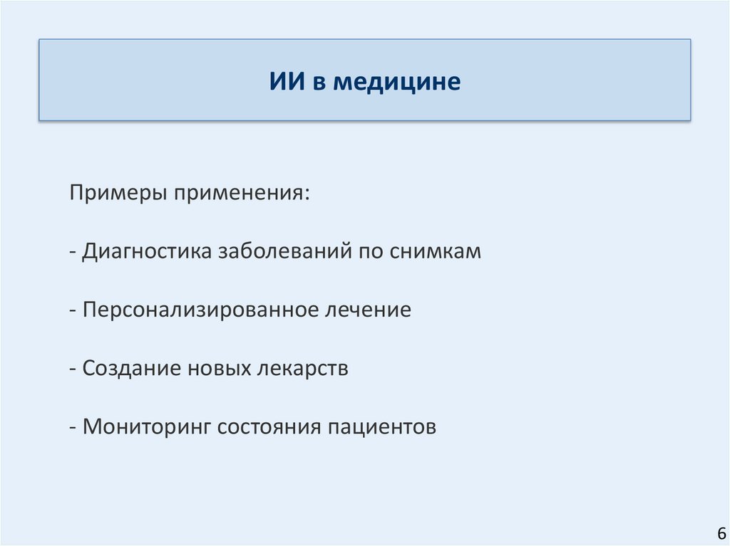 ИИ В МЕДИЦИНЕ……………………………………………………………………………………....................................................................................6