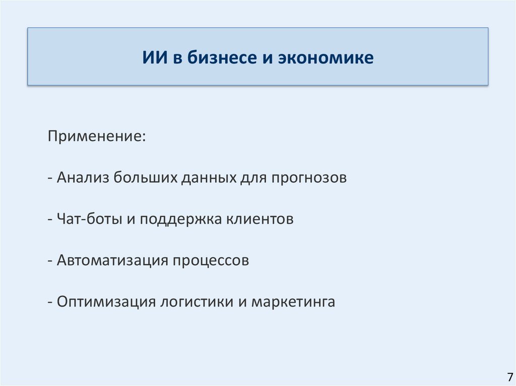 ИИ В БИЗНЕСЕ И ЭКОНОМИКЕ………………………………………………………………………………………….........................................................7