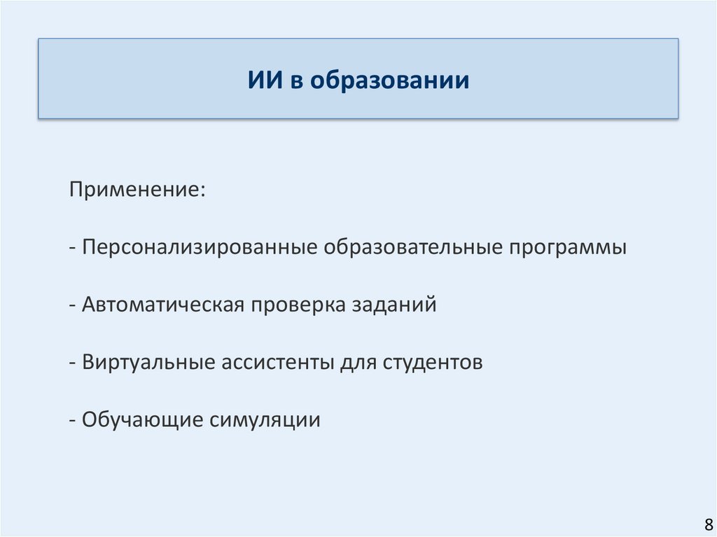ИИ В ОБРАЗОВАНИИ……………………………………………………………………………………………………..............................................................8