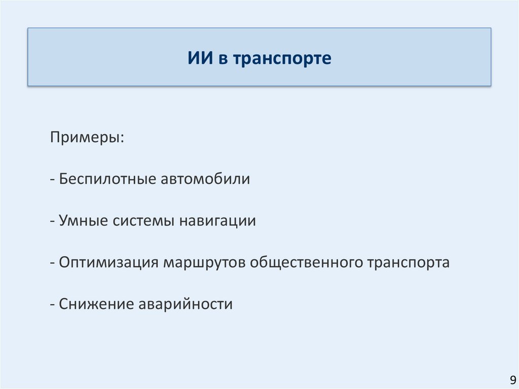 ИИ В ТРАНСПОРТЕ……………………………………………………………………………...........................................................................................9