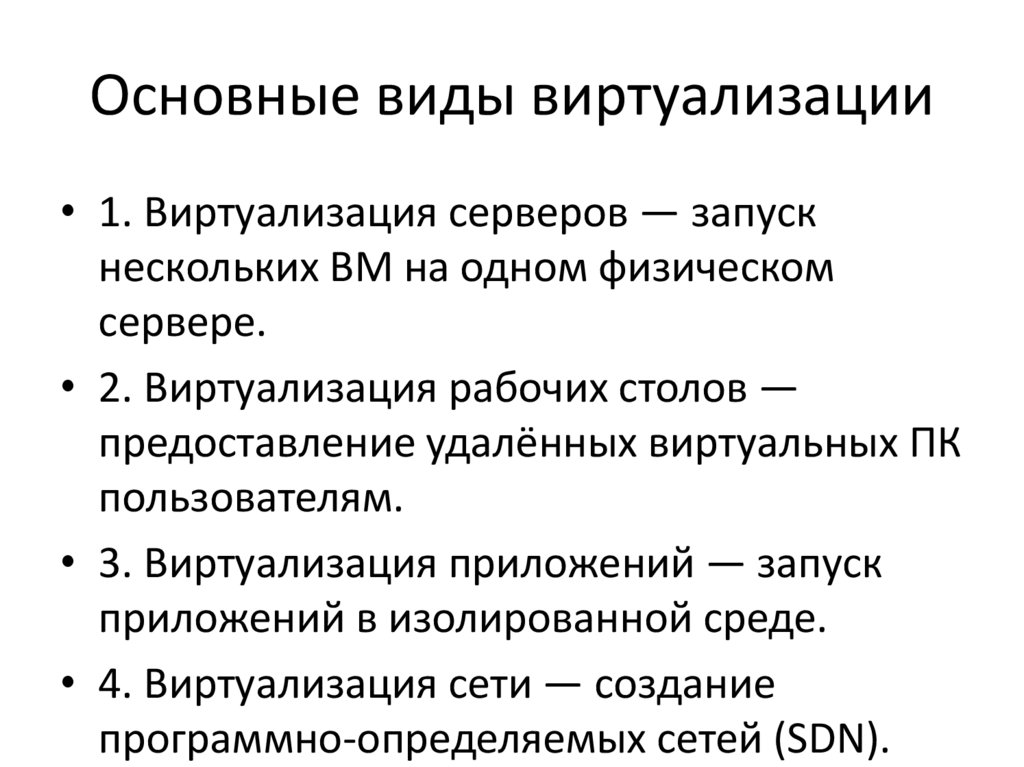 Основные виды виртуализации• 1. Виртуализация серверов — запуск