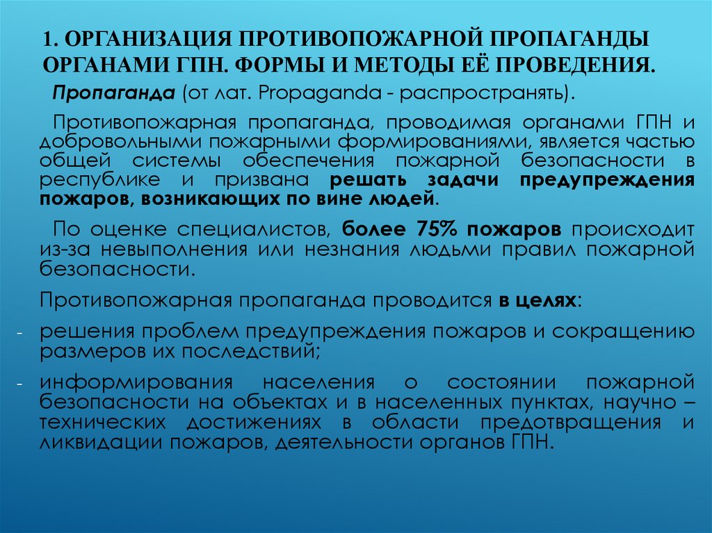 1. ОРГАНИЗАЦИЯ ПРОТИВОПОЖАРНОЙ ПРОПАГАНДЫОРГАНАМИ ГПН. ФОРМЫ И МЕТОДЫ ЕЁ ПРОВЕДЕНИЯ.