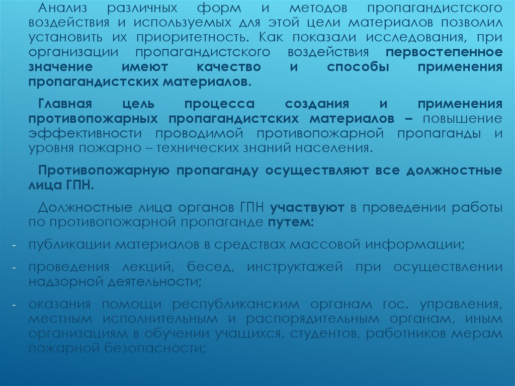 1. 1. Организация противопожарной пропаганды органами ГПН. Формы и методы её проведения.