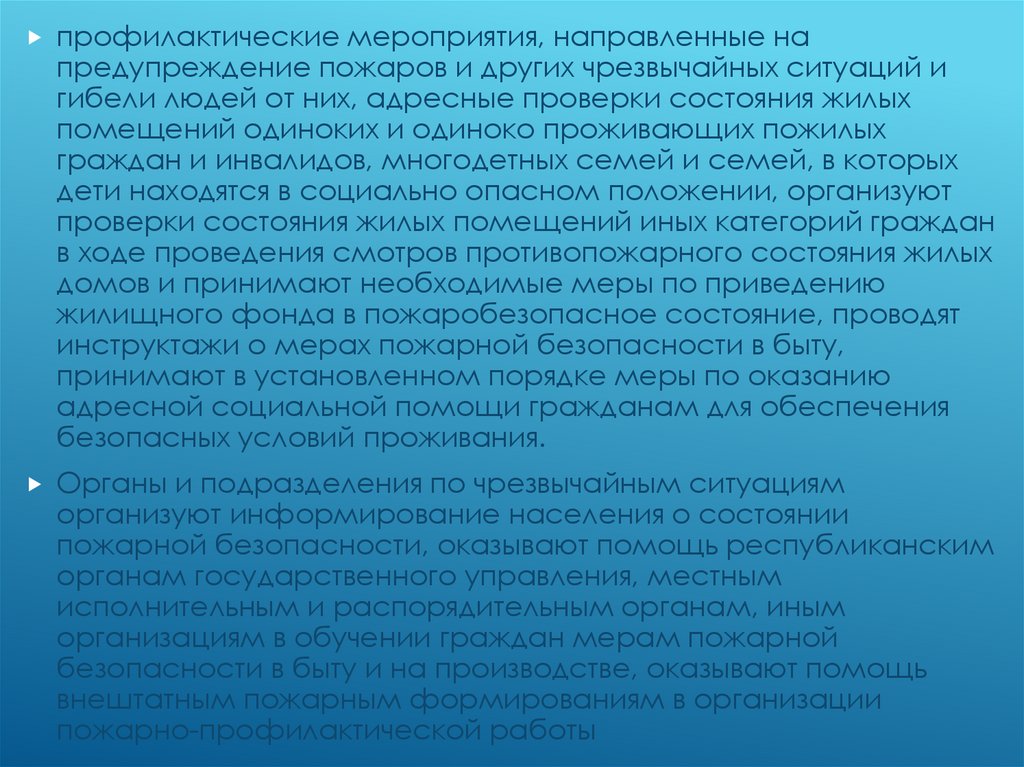 профилактические мероприятия, направленные напредупреждение пожаров и других чрезвычайных ситуаций и