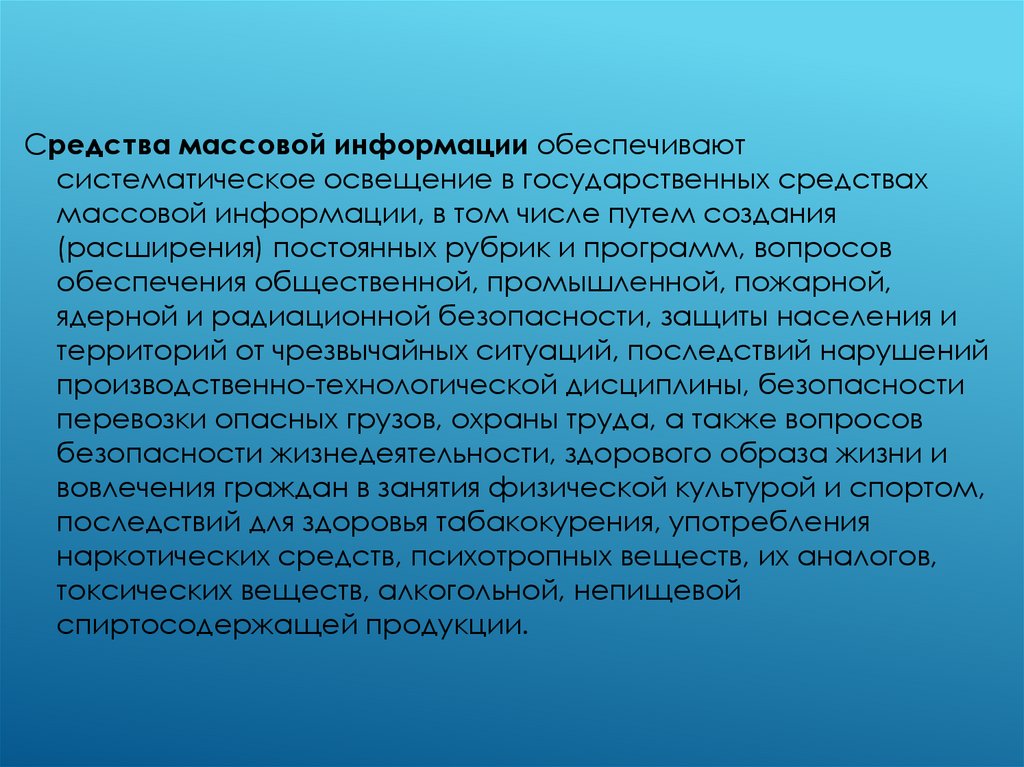 Средства массовой информации обеспечиваютсистематическое освещение в государственных средствах